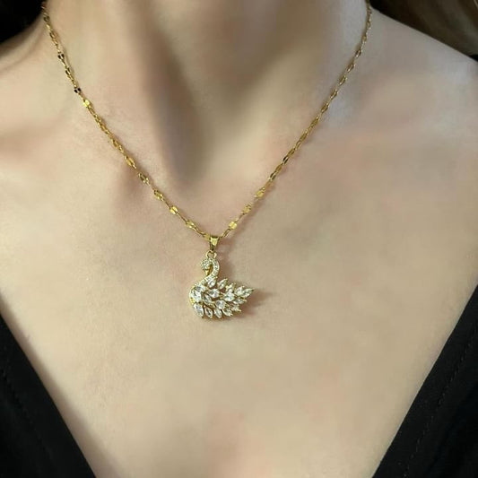 Z.14 Ayar Altın Kaplama Swarovski Taşlı Kuğu Kolye